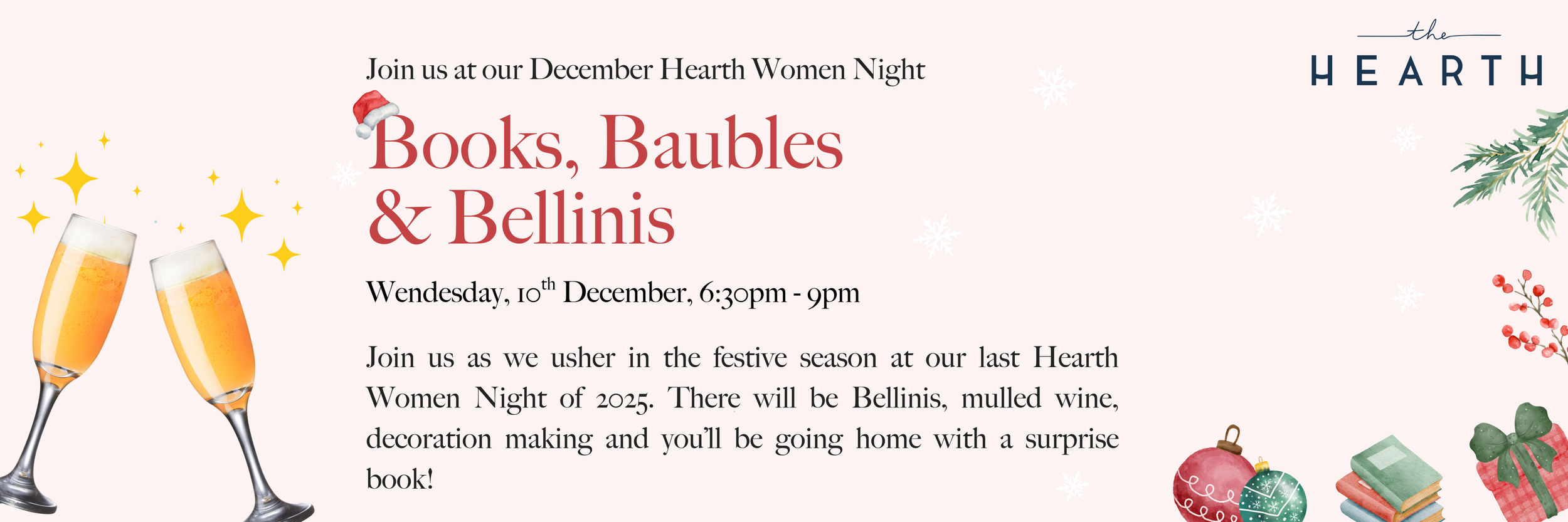 Join us as we usher in the festive season at our last Hearth Women Night of 2025. There will be Bellinis, mulled wine, decoration making and you’ll be going home with a surprise book! Think of this your very own ‘Office Party’ - without the HR team to judge your dancing or catch you photocopying your bottom.